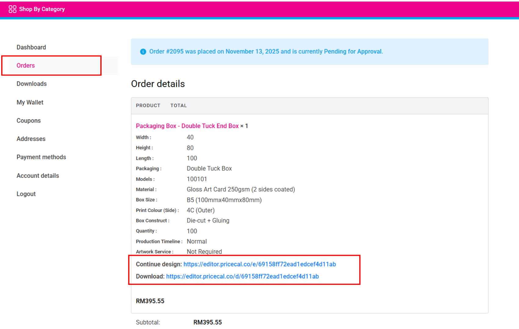 Choose your box specifications from the Price Calculator and click ADD TO CART.